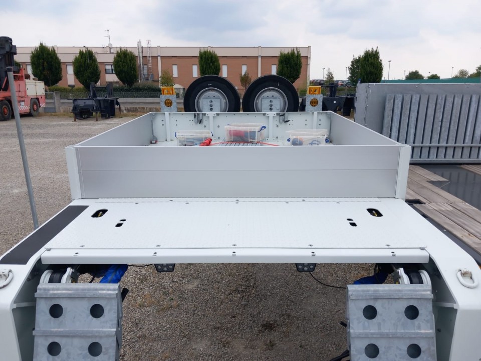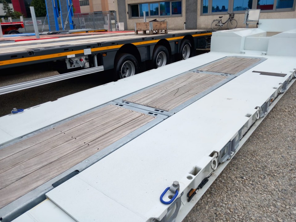 - Pianale super ribassato con lunghezza del pianale di carico di 6850 mm con doppio sfilo di 5500 mm e 5100mm