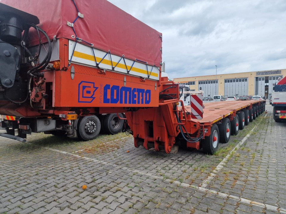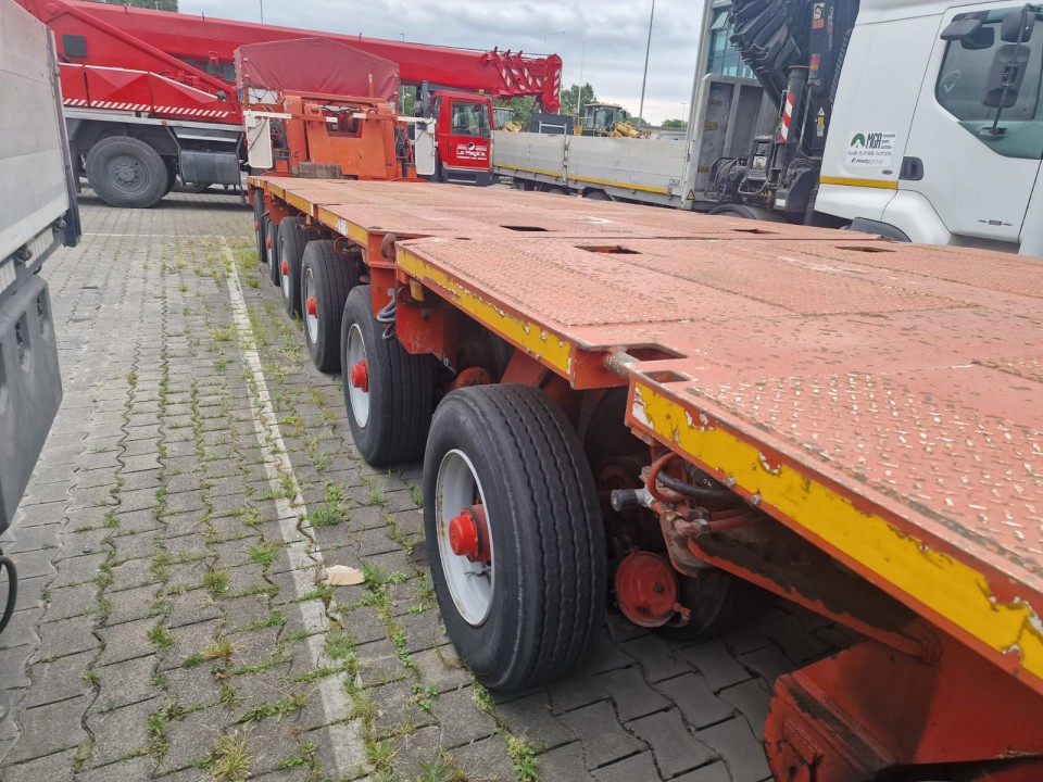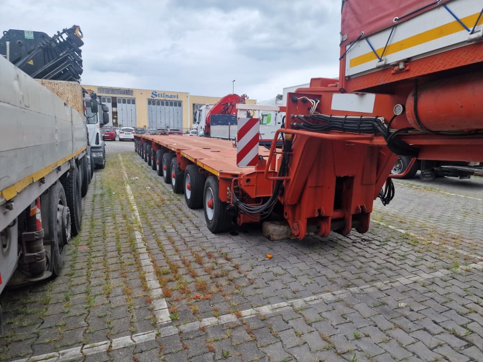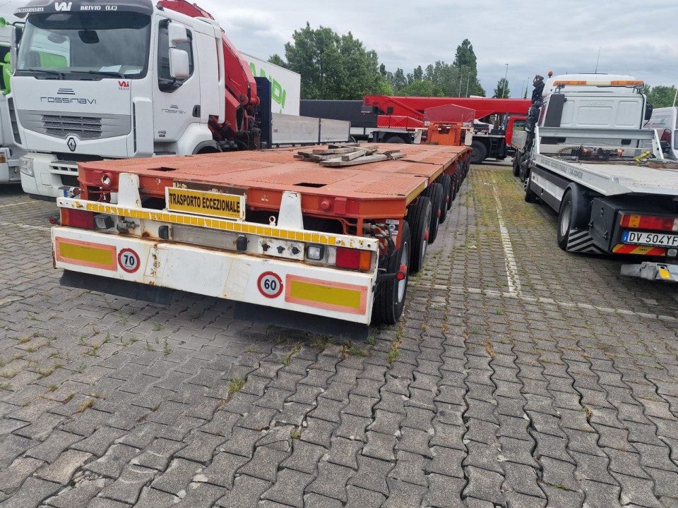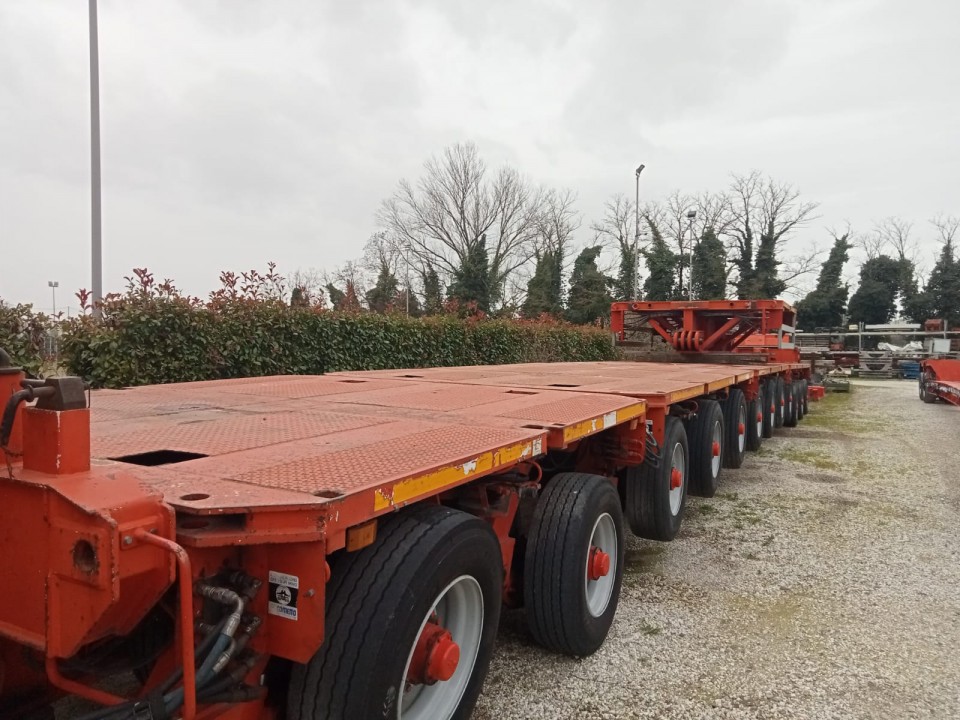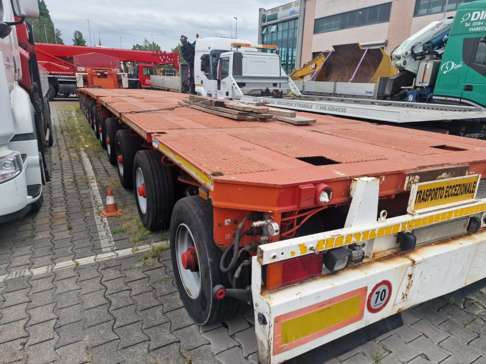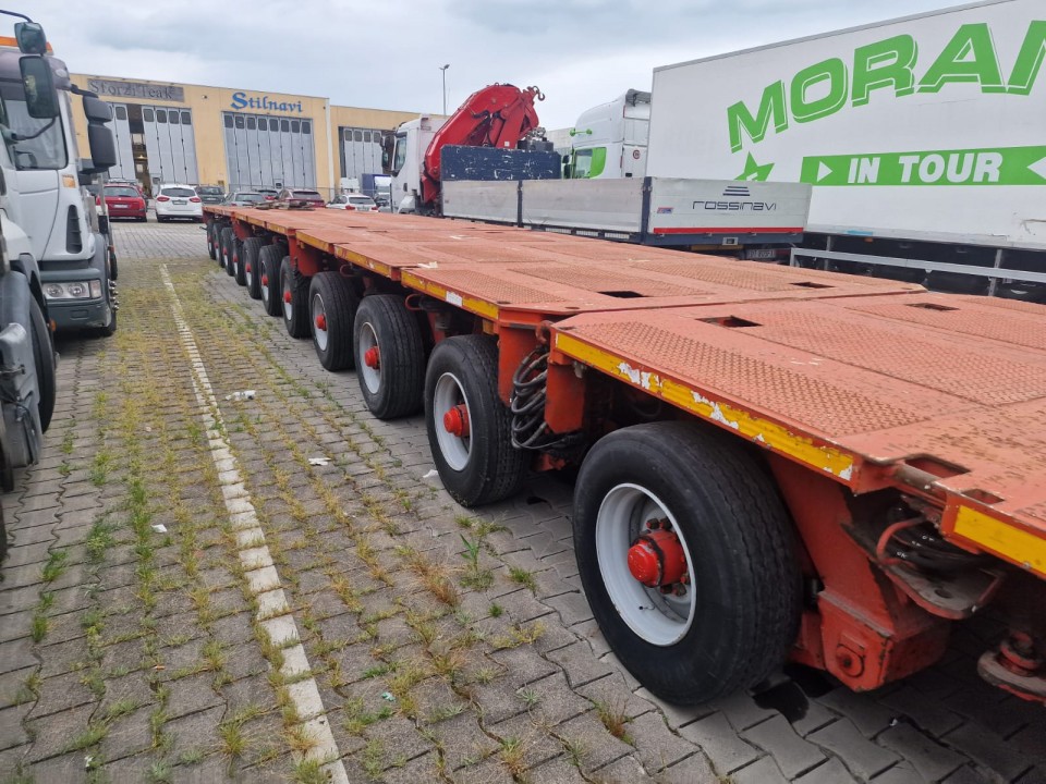 * N°2 Moduli 3 assi larghezza 2’750 mm; pneumatico 285/70 R19.5 interasse 1’600 mm; portata a 62,5 km/h di 13,750 kg; portata a 40 km/h di 15.000 kg;