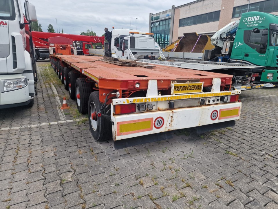 * N°1 Modulo 4 assi larghezza 2’750 mm; pneumatico 285/70 R19.5 interasse 1’600 mm; portata a 62,5 km/h di 13,750 kg; portata a 40 km/h di 15.000 kg;